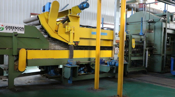 วัตถุดิบที่ใช้ในการผลิตหินหุ้นหินประกอบด้วย บาซาลท์, ดอลโมไมท, สารผูก, ฯลฯ วัตถุดิบถูกบรรทุกเข้าไปในฮอปเปอร์โดยลิฟท์และเตาหลอมหลอมถูกทําความร้อนและหลอมลงในถังระบายน้ําหลอม. น้ําหยาบลื่นถูกเย็นและหมุนเป็นเส้นใยโดยเซนทรฟิวเกอร์, และแล้วพ่นในห้องพิมพ์เส้นใย.และเส้นใยถูกทําความร้อนโดยลมแรงดันลบ. ดึงลงกับสายเชือกลวดเพื่อสร้างผ้าปูเดิมสายเชือกลวดขนส่งผ้าปูเดิมไปยังเครื่องผ้า pendulum เพื่อสวิงผ้าเครื่องผลิตฟิลท์เดิมหลังจากผ้าสวิงถูกขนส่งไปยังเตาบํารุงด้วยเครื่องผลิตผ้า, และวิ่งไปข้างหน้าระหว่างสายโซ่ด้านบนและด้านล่าง เครื่องพัดลมร้อนพัดลมร้อนเข้าไปในเตาผิงและผลิตภัณฑ์ที่แข็งแรงถูกตัด, การตัดด้านยาวครั้งแรก, และต่อมาการตัดด้านข้าม, และผลิตภัณฑ์ที่เสร็จสิ้นถูกบรรจุและวางไว้ในคลัง.
