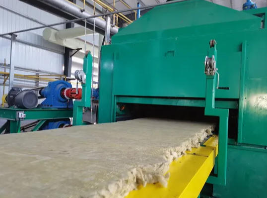 ในระหว่างการก่อตัวของเส้นใย สารยึดเกาะจะถูกพ่นเข้าไปในห้องขึ้นรูปเส้นใย ในขณะที่ลมแรงดันลบจะร้อนขึ้นและดึงเส้นใยลงไปบนสายพานตาข่ายเพื่อสร้างความรู้สึกดั้งเดิม จากนั้นเครื่องทอผ้าลูกตุ้มจะประมวลผลสักหลาดก่อนที่จะเข้าสู่เตาบ่ม ซึ่งอากาศร้อนจะทำให้วัสดุแข็งตัว สุดท้าย ผลิตภัณฑ์จะต้องผ่านการตัดอย่างแม่นยำ (ทั้งตามยาวและตามขวาง) ก่อนบรรจุและจัดเก็บ